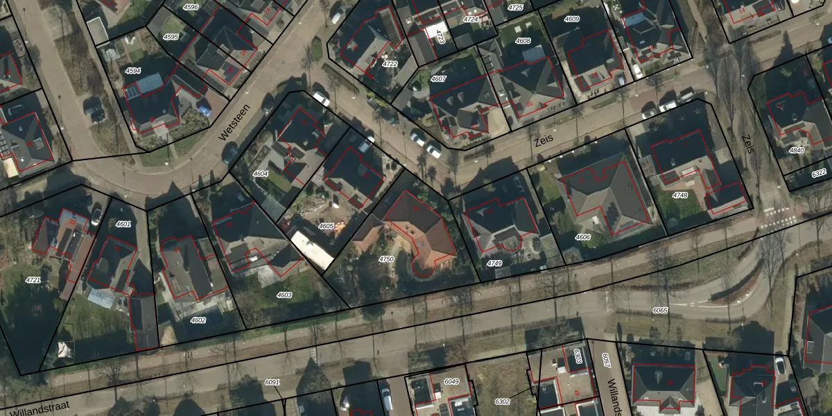 Het perceel waarop Zeis 13 staat heeft een oppervlakte van 727 m². Dit is een groot perceel. De perceeloppervlakte wordt geregistreerd door het Kadaster. Gedetailleerde informatie over de maten van dit perceel kunt u vinden in het rapport Kadastrale kaart met maatvoering van Zeis 13.