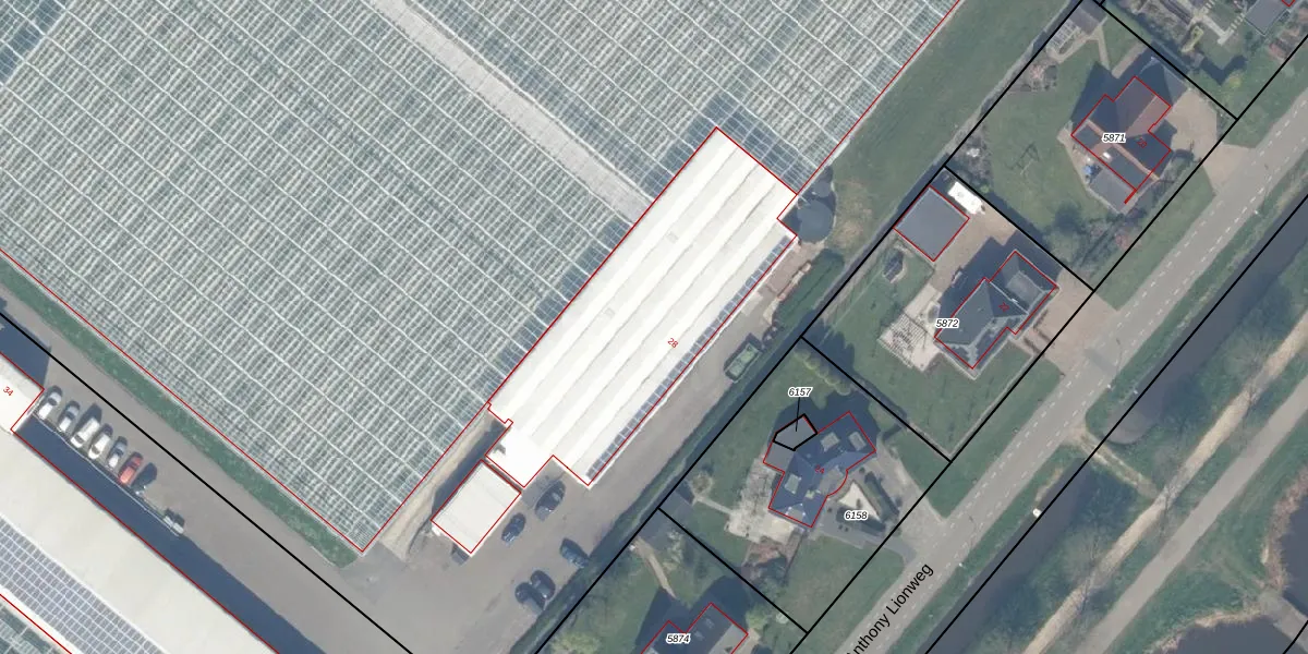Het perceel waarop Anthony Lionweg 28 staat heeft een oppervlakte van 3,0 ha. Dit is een zeer groot perceel. De perceeloppervlakte wordt geregistreerd door het Kadaster. Gedetailleerde informatie over de maten van dit perceel kunt u vinden in het rapport Kadastrale kaart met maatvoering van Anthony Lionweg 28.
