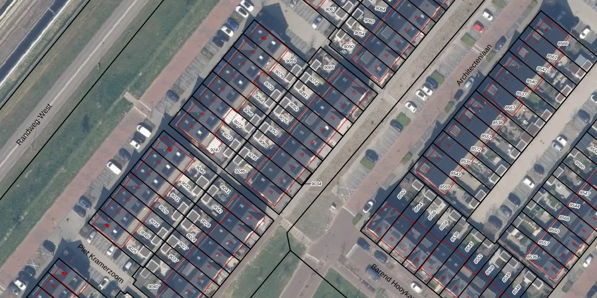 Gebruik de zoekbalk of klik op een perceel voor informatie over de adressen binnen dit perceel.
