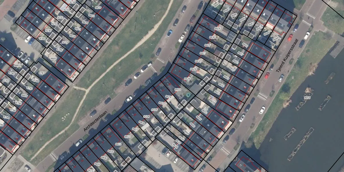Architectenlaan 39 is gelegen op kadastraal perceel BSH00B8433. Deze kadastrale aanduiding is uniek en wordt gebruikt door het Kadaster om eigendomsrechten en andere zakelijke rechten vast te leggen. Het perceel maakt onderdeel uit van de kadastrale gemeente Bergschenhoek.