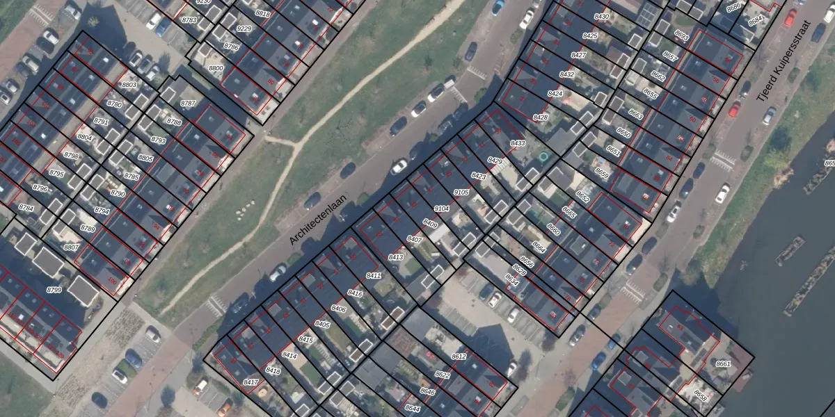 Gebruik de zoekbalk of klik op een perceel voor informatie over de adressen binnen dit perceel.