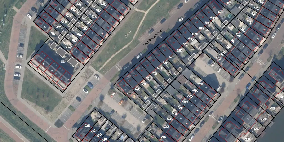 Gebruik de zoekbalk of klik op een perceel voor informatie over de adressen binnen dit perceel.