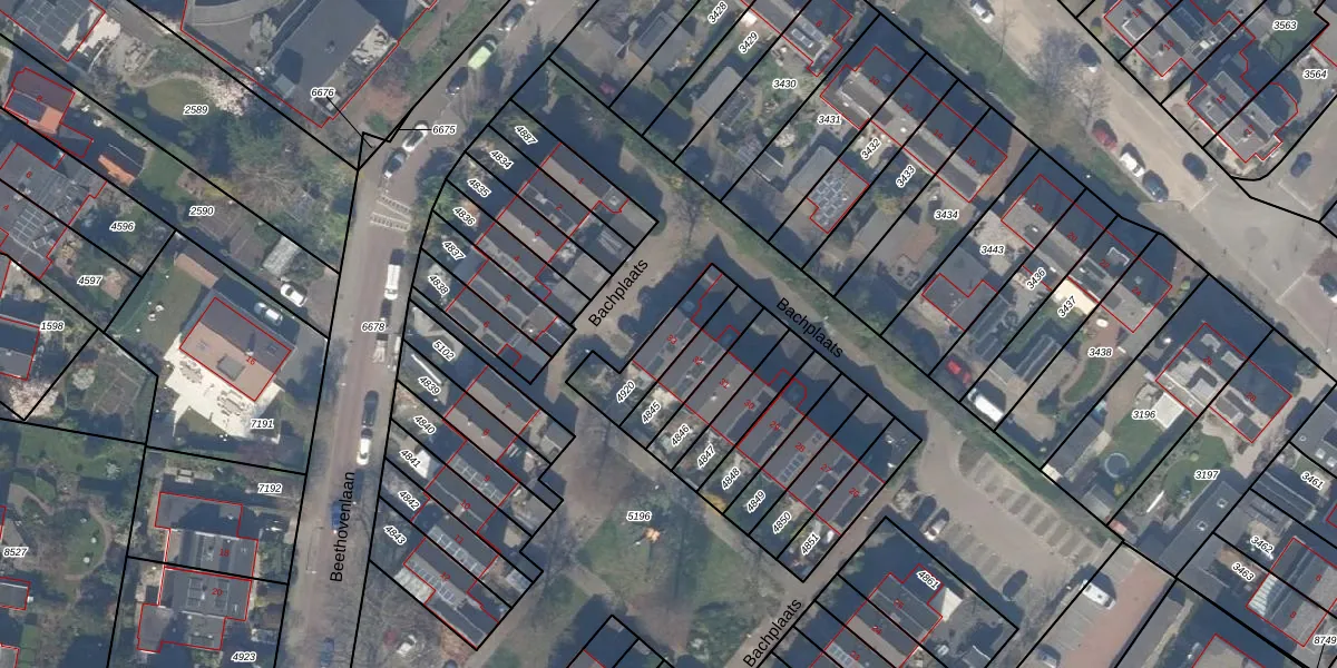 Het perceel waarop Bachplaats 33 staat heeft een oppervlakte van 178 m². Dit is een middelgroot perceel. De perceeloppervlakte wordt geregistreerd door het Kadaster. Gedetailleerde informatie over de maten van dit perceel kunt u vinden in het rapport Kadastrale kaart met maatvoering van Bachplaats 33.