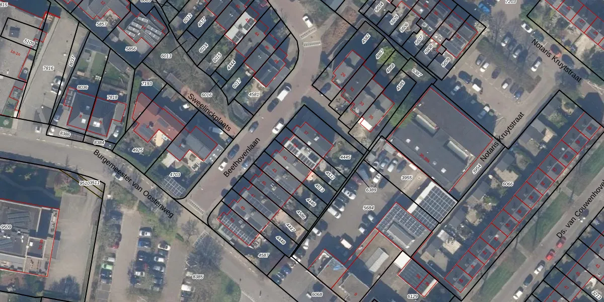 Beethovenlaan 39 is gelegen op kadastraal perceel BSH00B4512. Deze kadastrale aanduiding is uniek en wordt gebruikt door het Kadaster om eigendomsrechten en andere zakelijke rechten vast te leggen. Het perceel maakt onderdeel uit van de kadastrale gemeente Bergschenhoek.