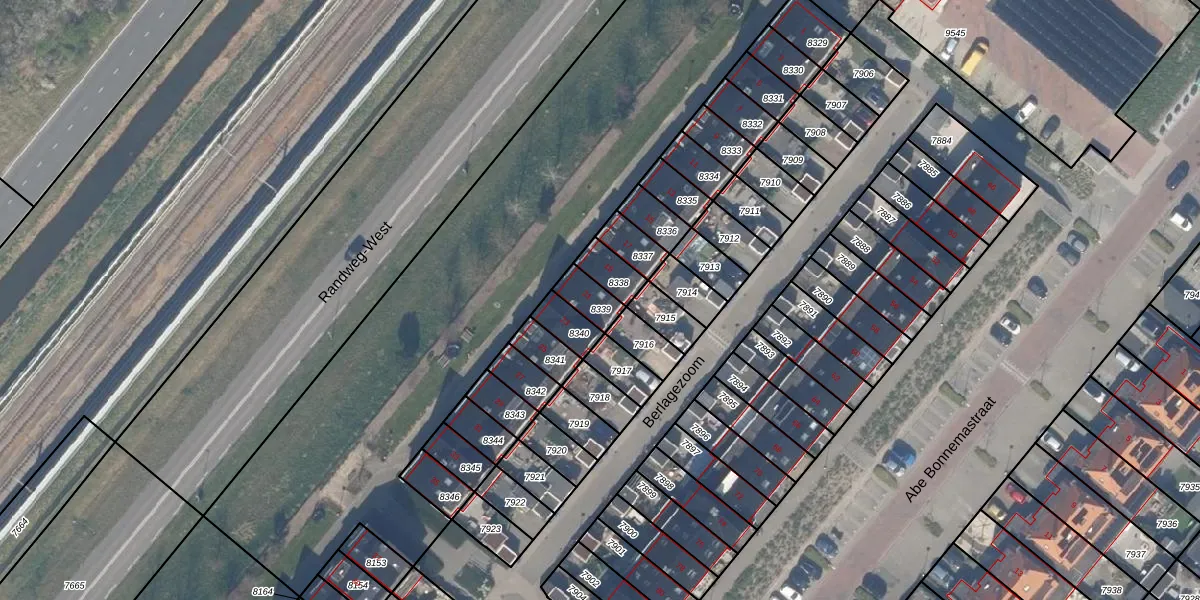 Gebruik de zoekbalk of klik op een perceel voor informatie over de adressen binnen dit perceel.