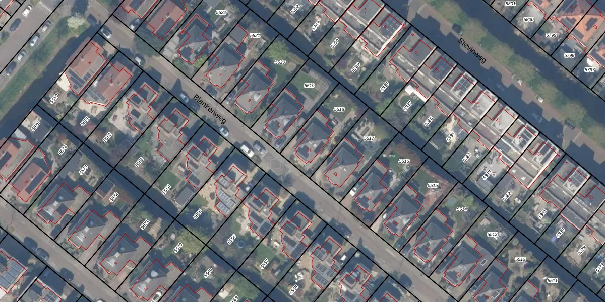 Het perceel waarop Blankenweg 13 staat heeft een oppervlakte van 392 m². Dit is een groot perceel. De perceeloppervlakte wordt geregistreerd door het Kadaster. Gedetailleerde informatie over de maten van dit perceel kunt u vinden in het rapport Kadastrale kaart met maatvoering van Blankenweg 13.