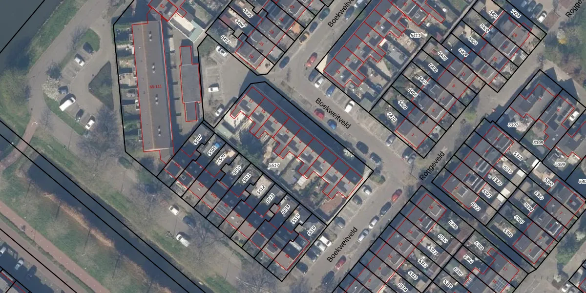 Het perceel waarop Boekweitveld 9 staat heeft een oppervlakte van 1247 m². Dit is een zeer groot perceel. De perceeloppervlakte wordt geregistreerd door het Kadaster. Gedetailleerde informatie over de maten van dit perceel kunt u vinden in het rapport Kadastrale kaart met maatvoering van Boekweitveld 9.