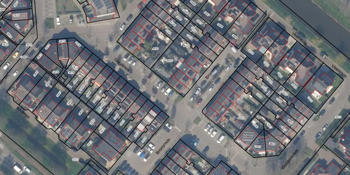 Het perceel waarop Bronsmos 16 staat heeft een oppervlakte van 642 m². Dit is een groot perceel. De perceeloppervlakte wordt geregistreerd door het Kadaster. Gedetailleerde informatie over de maten van dit perceel kunt u vinden in het rapport Kadastrale kaart met maatvoering van Bronsmos 16.