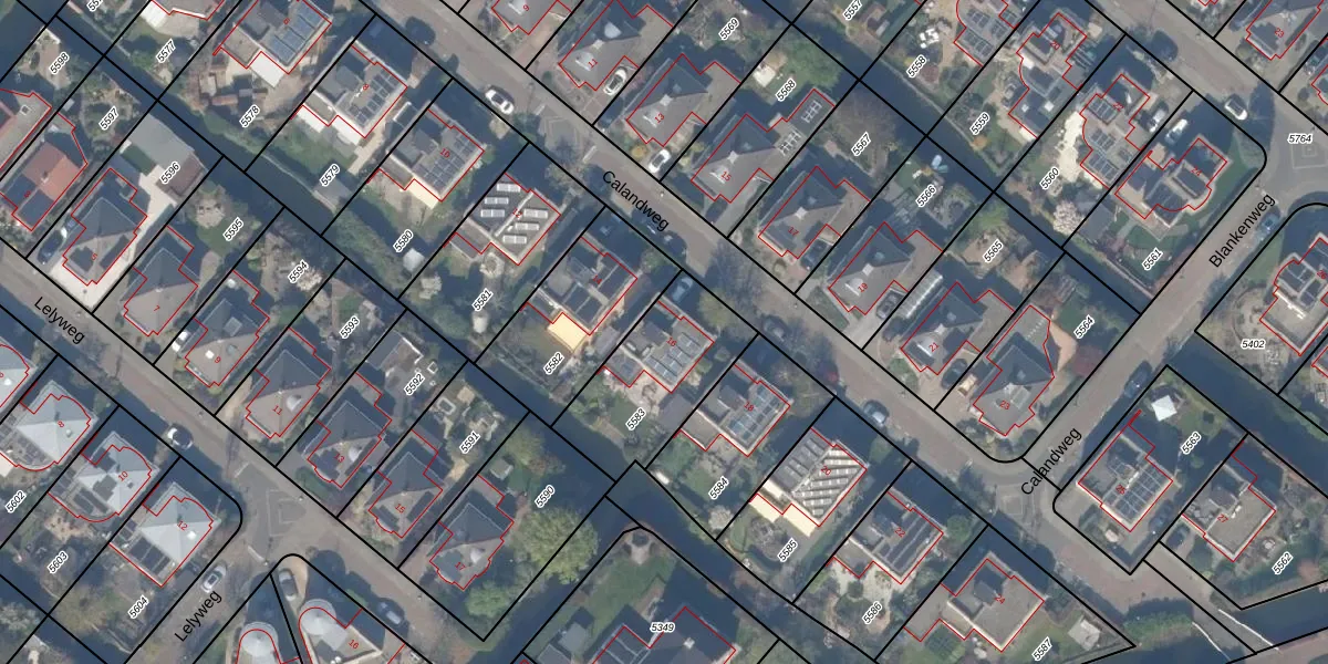 Het perceel waarop Calandweg 16 staat heeft een oppervlakte van 458 m². Dit is een groot perceel. De perceeloppervlakte wordt geregistreerd door het Kadaster. Gedetailleerde informatie over de maten van dit perceel kunt u vinden in het rapport Kadastrale kaart met maatvoering van Calandweg 16.