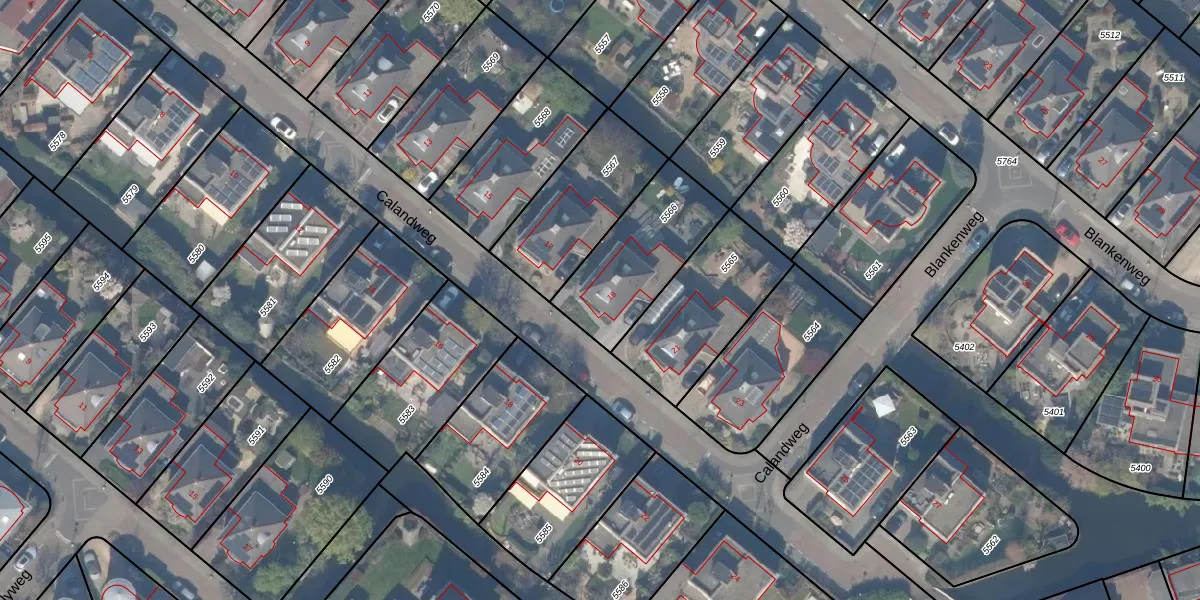 Het perceel waarop Calandweg 19 staat heeft een oppervlakte van 410 m². Dit is een groot perceel. De perceeloppervlakte wordt geregistreerd door het Kadaster. Gedetailleerde informatie over de maten van dit perceel kunt u vinden in het rapport Kadastrale kaart met maatvoering van Calandweg 19.
