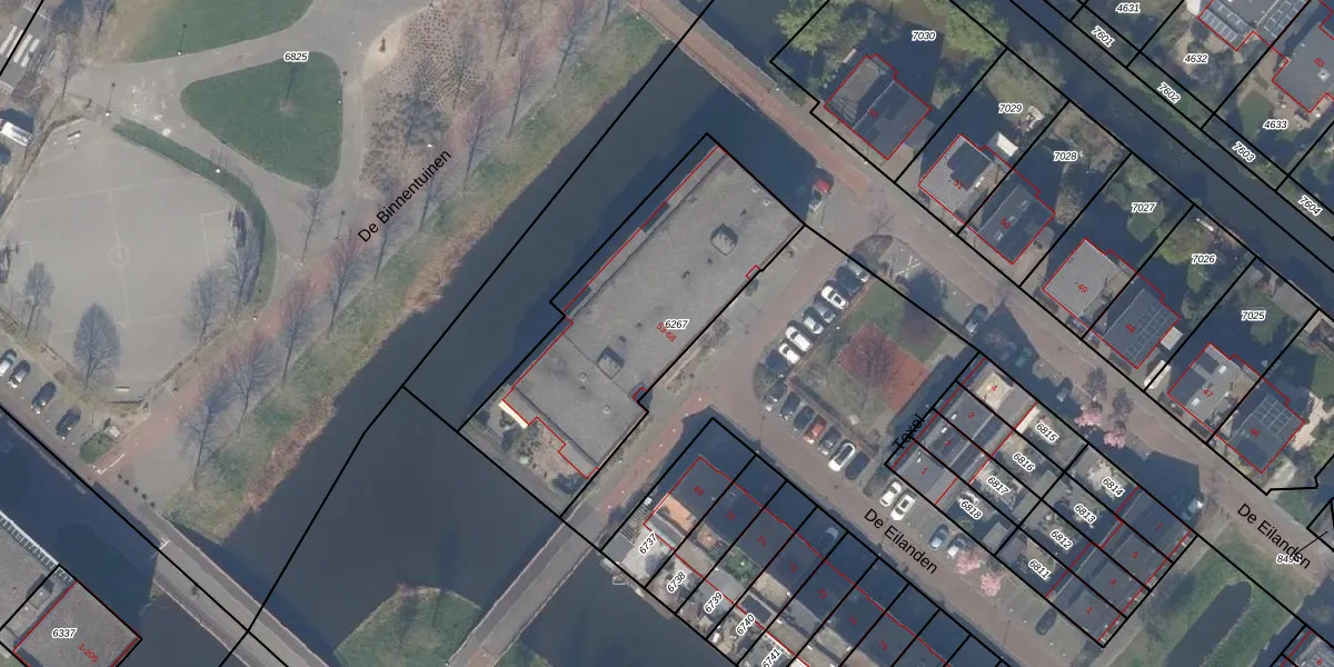 Het perceel waarop De Eilanden 63 staat heeft een oppervlakte van 1135 m². Dit is een zeer groot perceel. De perceeloppervlakte wordt geregistreerd door het Kadaster. Gedetailleerde informatie over de maten van dit perceel kunt u vinden in het rapport Kadastrale kaart met maatvoering van De Eilanden 63.