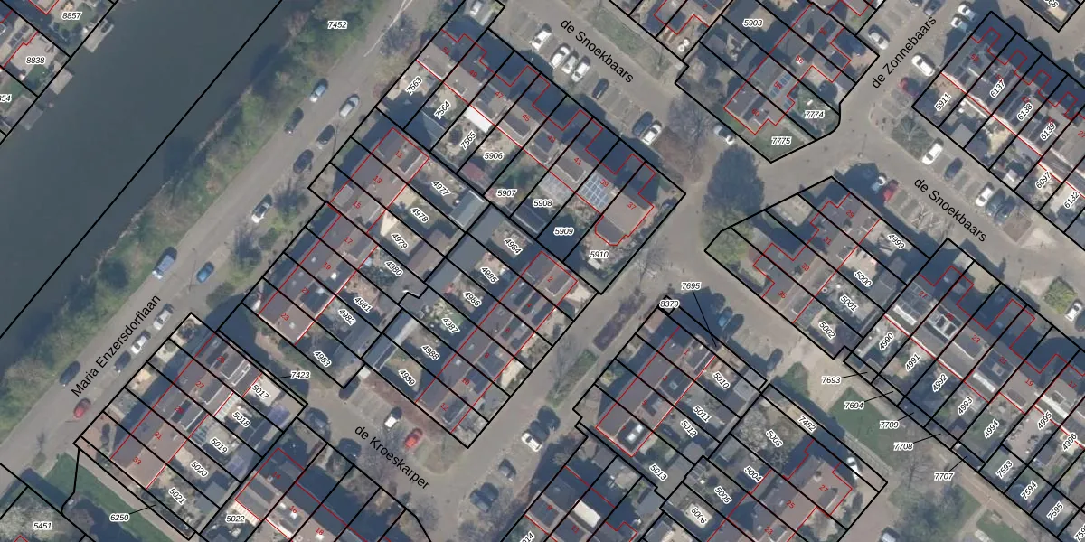 Het perceel waarop de Kroeskarper 2 staat heeft een oppervlakte van 180 m². Dit is een middelgroot perceel. De perceeloppervlakte wordt geregistreerd door het Kadaster. Gedetailleerde informatie over de maten van dit perceel kunt u vinden in het rapport Kadastrale kaart met maatvoering van de Kroeskarper 2.