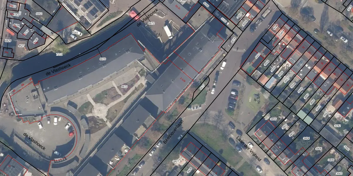 Het perceel waarop de Vlashoeck 11 staat heeft een oppervlakte van 8105 m². Dit is een zeer groot perceel. De perceeloppervlakte wordt geregistreerd door het Kadaster. Gedetailleerde informatie over de maten van dit perceel kunt u vinden in het rapport Kadastrale kaart met maatvoering van de Vlashoeck 11.