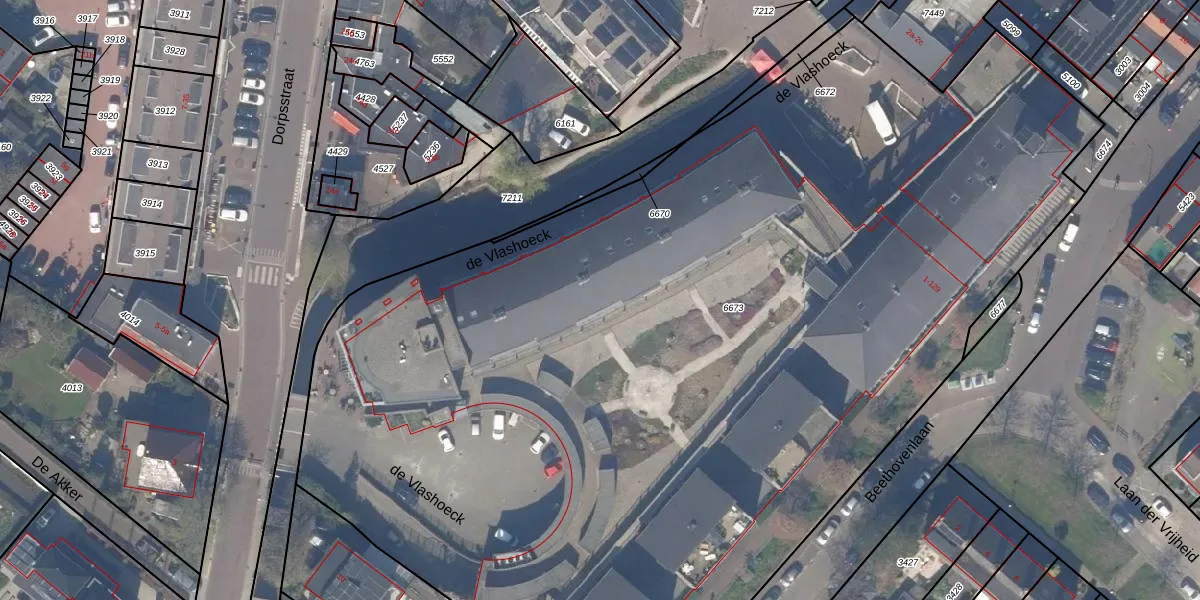 Het perceel waarop de Vlashoeck 117 staat heeft een oppervlakte van 8105 m². Dit is een zeer groot perceel. De perceeloppervlakte wordt geregistreerd door het Kadaster. Gedetailleerde informatie over de maten van dit perceel kunt u vinden in het rapport Kadastrale kaart met maatvoering van de Vlashoeck 117.