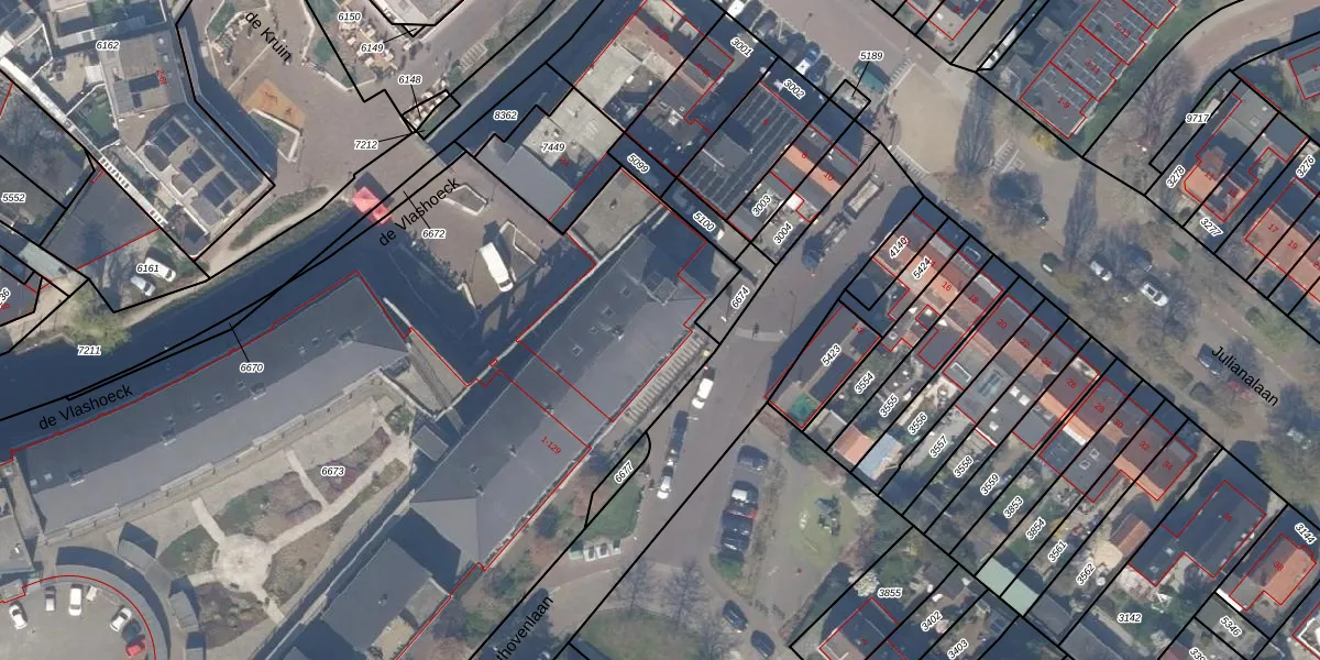 Het perceel waarop de Vlashoeck 3 staat heeft een oppervlakte van 8105 m². Dit is een zeer groot perceel. De perceeloppervlakte wordt geregistreerd door het Kadaster. Gedetailleerde informatie over de maten van dit perceel kunt u vinden in het rapport Kadastrale kaart met maatvoering van de Vlashoeck 3.
