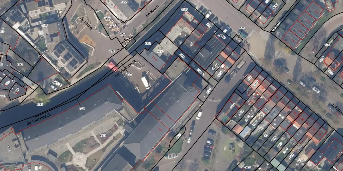 Het perceel waarop de Vlashoeck 40 staat heeft een oppervlakte van 8105 m². Dit is een zeer groot perceel. De perceeloppervlakte wordt geregistreerd door het Kadaster. Gedetailleerde informatie over de maten van dit perceel kunt u vinden in het rapport Kadastrale kaart met maatvoering van de Vlashoeck 40.