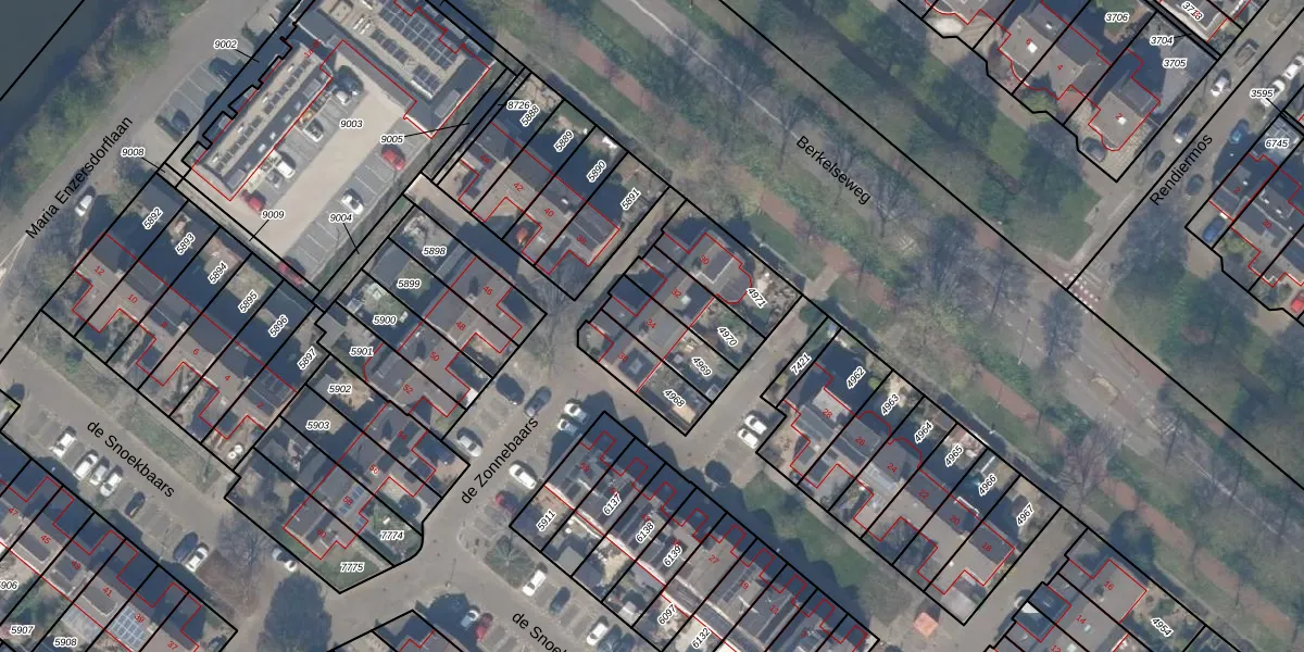 Gebruik de zoekbalk of klik op een perceel voor informatie over de adressen binnen dit perceel.