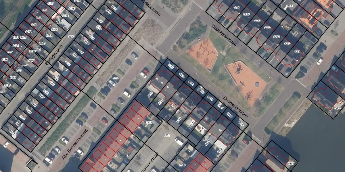 Dudokplantsoen 13 is gelegen op kadastraal perceel BSH00B8012. Deze kadastrale aanduiding is uniek en wordt gebruikt door het Kadaster om eigendomsrechten en andere zakelijke rechten vast te leggen. Het perceel maakt onderdeel uit van de kadastrale gemeente Bergschenhoek.