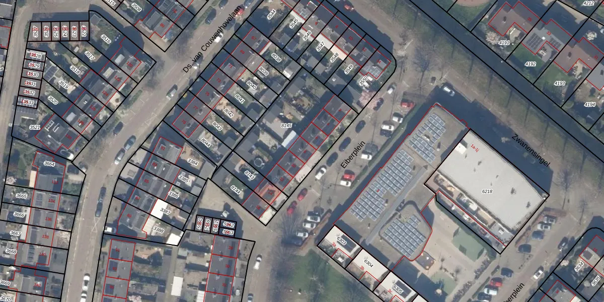 Het perceel waarop Eiberplein 8 staat heeft een oppervlakte van 855 m². Dit is een groot perceel. De perceeloppervlakte wordt geregistreerd door het Kadaster. Gedetailleerde informatie over de maten van dit perceel kunt u vinden in het rapport Kadastrale kaart met maatvoering van Eiberplein 8.