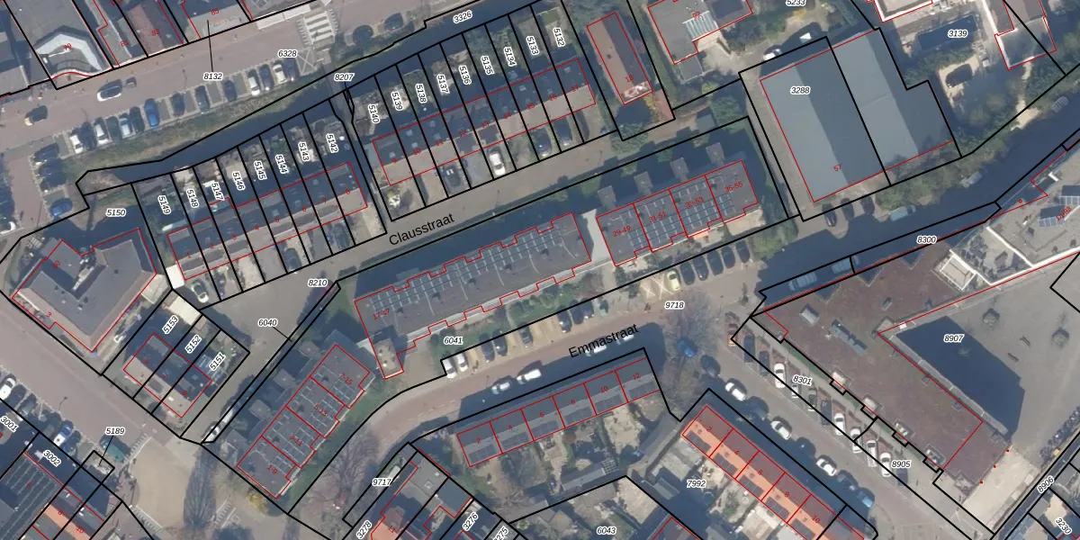 Het perceel waarop Emmastraat 45 staat heeft een oppervlakte van 2395 m². Dit is een zeer groot perceel. De perceeloppervlakte wordt geregistreerd door het Kadaster. Gedetailleerde informatie over de maten van dit perceel kunt u vinden in het rapport Kadastrale kaart met maatvoering van Emmastraat 45.