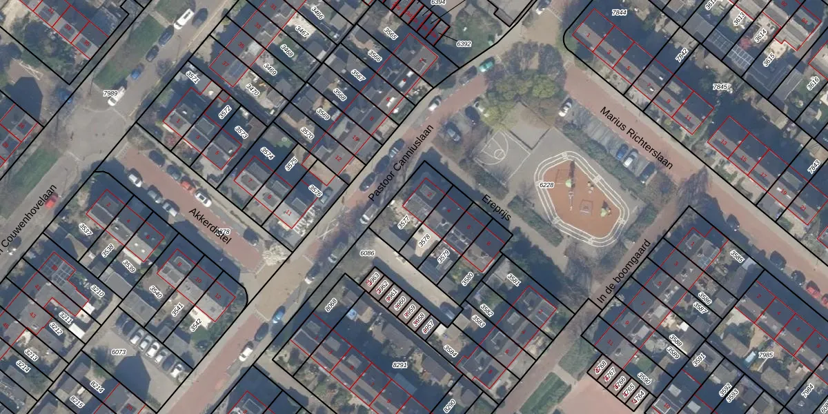Gebruik de zoekbalk of klik op een perceel voor informatie over de adressen binnen dit perceel.