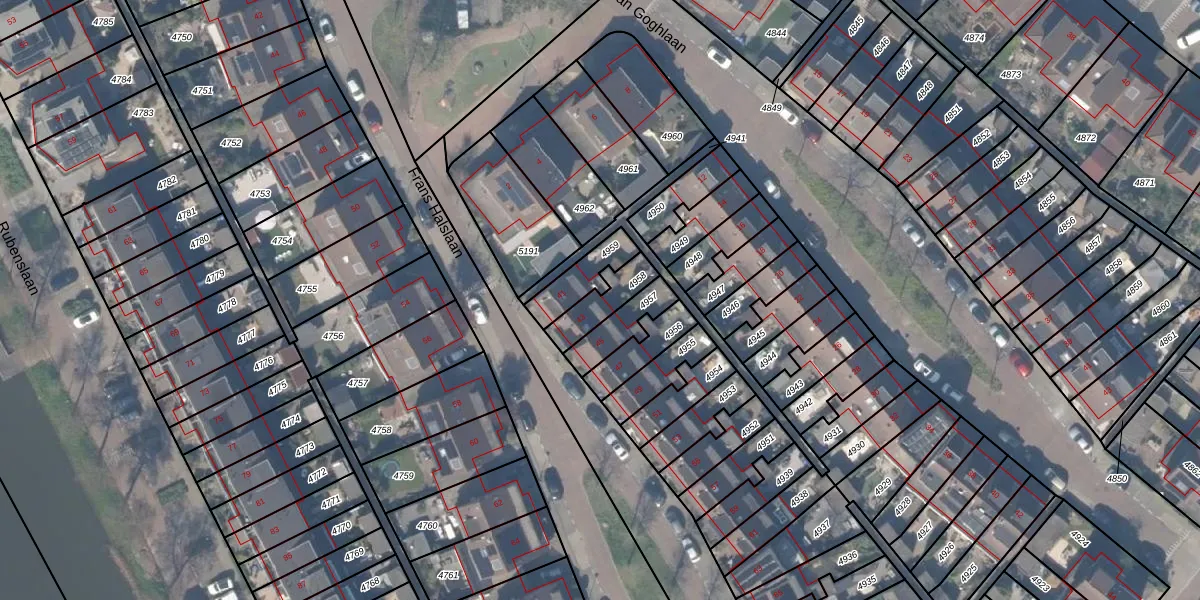 Frans Halslaan 43 is gelegen op kadastraal perceel BSH00A4958. Deze kadastrale aanduiding is uniek en wordt gebruikt door het Kadaster om eigendomsrechten en andere zakelijke rechten vast te leggen. Het perceel maakt onderdeel uit van de kadastrale gemeente Bergschenhoek.