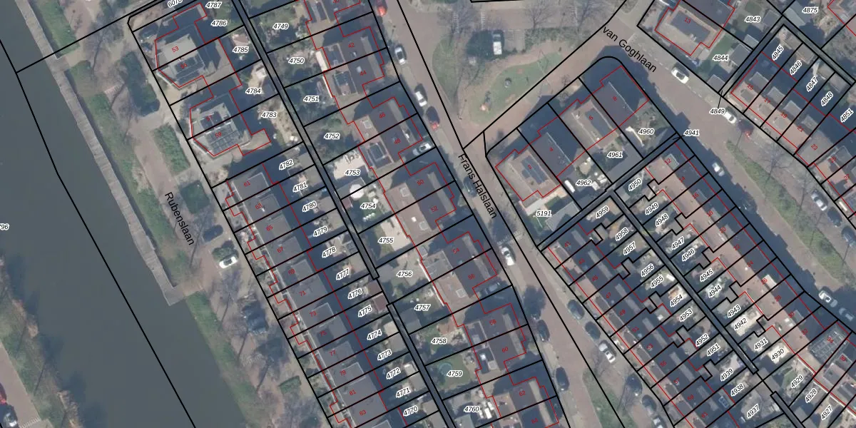 Het perceel waarop Frans Halslaan 52 staat heeft een oppervlakte van 235 m². Dit is een middelgroot perceel. De perceeloppervlakte wordt geregistreerd door het Kadaster. Gedetailleerde informatie over de maten van dit perceel kunt u vinden in het rapport Kadastrale kaart met maatvoering van Frans Halslaan 52.
