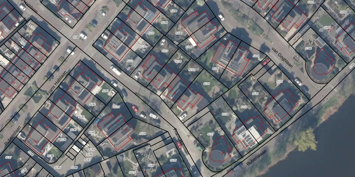 Het perceel waarop Frans Halslaan 99 staat heeft een oppervlakte van 262 m². Dit is een middelgroot perceel. De perceeloppervlakte wordt geregistreerd door het Kadaster. Gedetailleerde informatie over de maten van dit perceel kunt u vinden in het rapport Kadastrale kaart met maatvoering van Frans Halslaan 99.