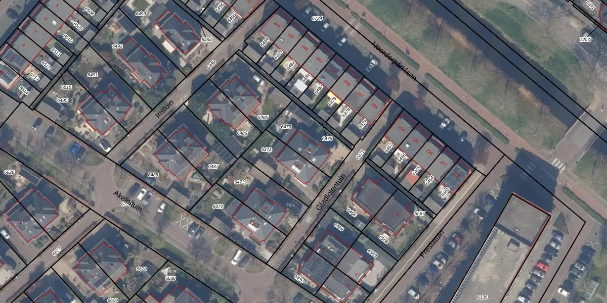 Gebruik de zoekbalk of klik op een perceel voor informatie over de adressen binnen dit perceel.
