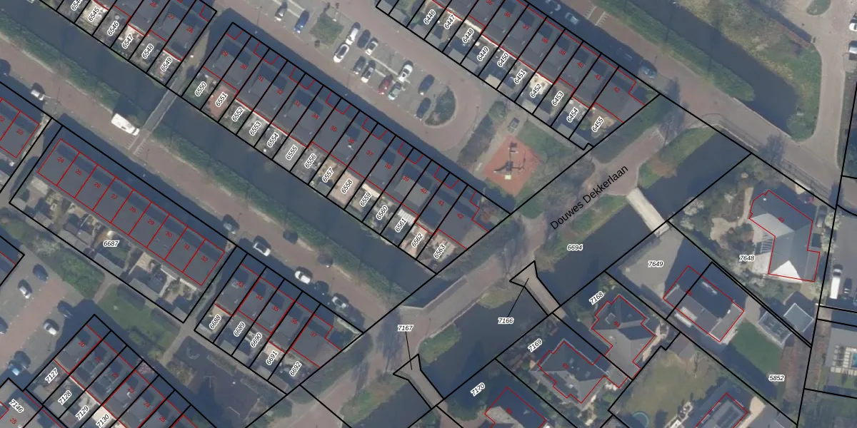 Gebruik de zoekbalk of klik op een perceel voor informatie over de adressen binnen dit perceel.