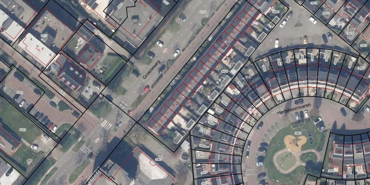 Het perceel waarop Groeneweg 80 staat heeft een oppervlakte van 2165 m². Dit is een zeer groot perceel. De perceeloppervlakte wordt geregistreerd door het Kadaster. Gedetailleerde informatie over de maten van dit perceel kunt u vinden in het rapport Kadastrale kaart met maatvoering van Groeneweg 80.