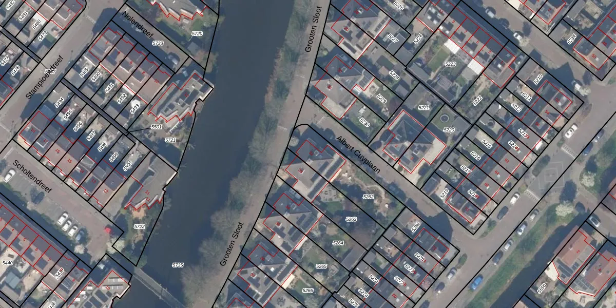Het perceel waarop Grooten Sloot 32 staat heeft een oppervlakte van 430 m². Dit is een groot perceel. De perceeloppervlakte wordt geregistreerd door het Kadaster. Gedetailleerde informatie over de maten van dit perceel kunt u vinden in het rapport Kadastrale kaart met maatvoering van Grooten Sloot 32.
