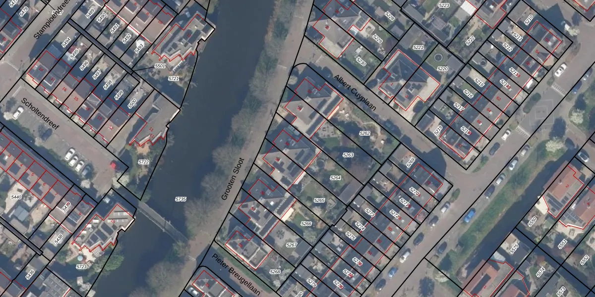 Grooten Sloot 34 is gelegen op kadastraal perceel BSH00A5264. Deze kadastrale aanduiding is uniek en wordt gebruikt door het Kadaster om eigendomsrechten en andere zakelijke rechten vast te leggen. Het perceel maakt onderdeel uit van de kadastrale gemeente Bergschenhoek.