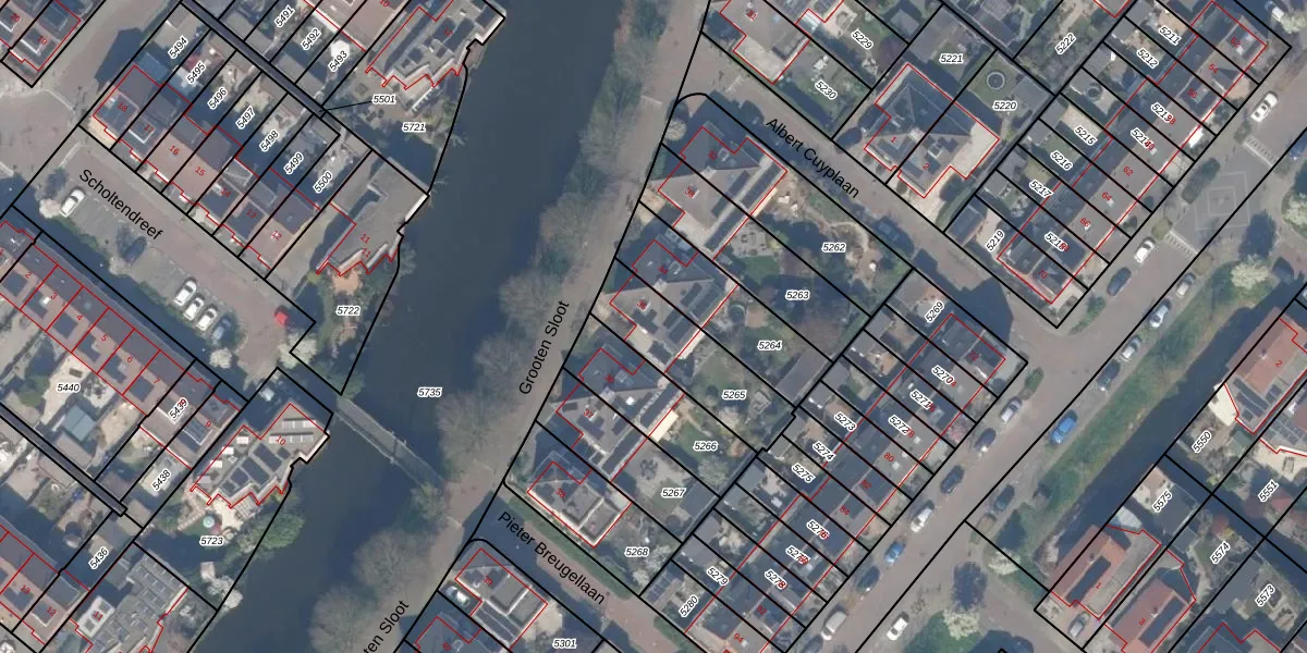 Het perceel waarop Grooten Sloot 35 staat heeft een oppervlakte van 319 m². Dit is een groot perceel. De perceeloppervlakte wordt geregistreerd door het Kadaster. Gedetailleerde informatie over de maten van dit perceel kunt u vinden in het rapport Kadastrale kaart met maatvoering van Grooten Sloot 35.