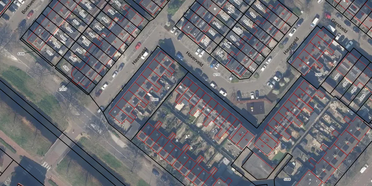 Het perceel waarop Haverveld 22 staat heeft een oppervlakte van 6260 m². Dit is een zeer groot perceel. De perceeloppervlakte wordt geregistreerd door het Kadaster. Gedetailleerde informatie over de maten van dit perceel kunt u vinden in het rapport Kadastrale kaart met maatvoering van Haverveld 22.