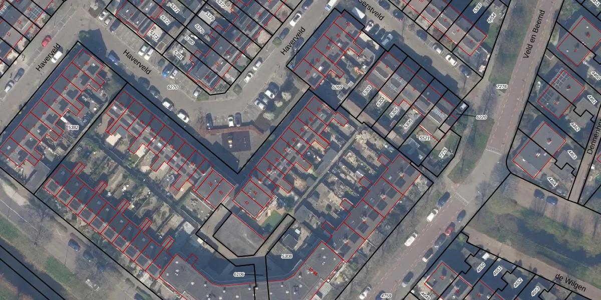 Het perceel waarop Haverveld 54 staat heeft een oppervlakte van 6260 m². Dit is een zeer groot perceel. De perceeloppervlakte wordt geregistreerd door het Kadaster. Gedetailleerde informatie over de maten van dit perceel kunt u vinden in het rapport Kadastrale kaart met maatvoering van Haverveld 54.