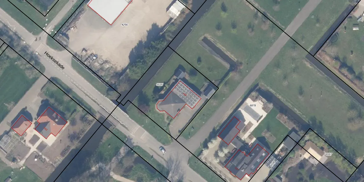 Het perceel waarop Hoeksekade 115 staat heeft een oppervlakte van 1355 m². Dit is een zeer groot perceel. De perceeloppervlakte wordt geregistreerd door het Kadaster. Gedetailleerde informatie over de maten van dit perceel kunt u vinden in het rapport Kadastrale kaart met maatvoering van Hoeksekade 115.