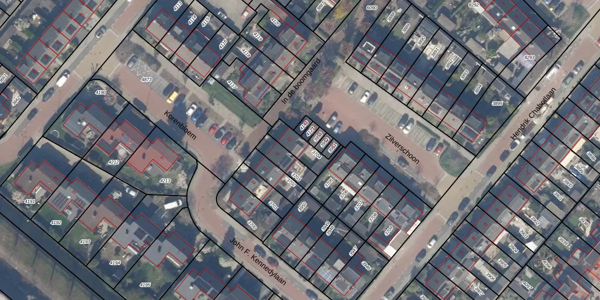 Gebruik de zoekbalk of klik op een perceel voor informatie over de adressen binnen dit perceel.