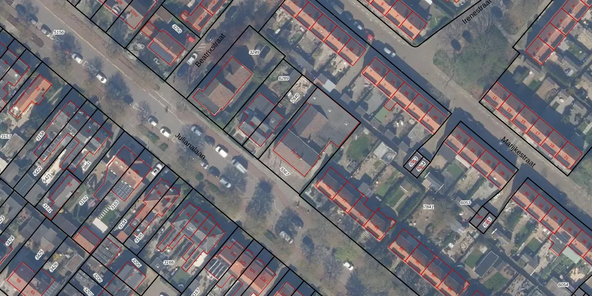 Het perceel waarop Julianalaan 73 staat heeft een oppervlakte van 599 m². Dit is een groot perceel. De perceeloppervlakte wordt geregistreerd door het Kadaster. Gedetailleerde informatie over de maten van dit perceel kunt u vinden in het rapport Kadastrale kaart met maatvoering van Julianalaan 73.