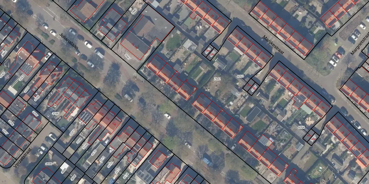 Het perceel waarop Julianalaan 81 staat heeft een oppervlakte van 7611 m². Dit is een zeer groot perceel. De perceeloppervlakte wordt geregistreerd door het Kadaster. Gedetailleerde informatie over de maten van dit perceel kunt u vinden in het rapport Kadastrale kaart met maatvoering van Julianalaan 81.