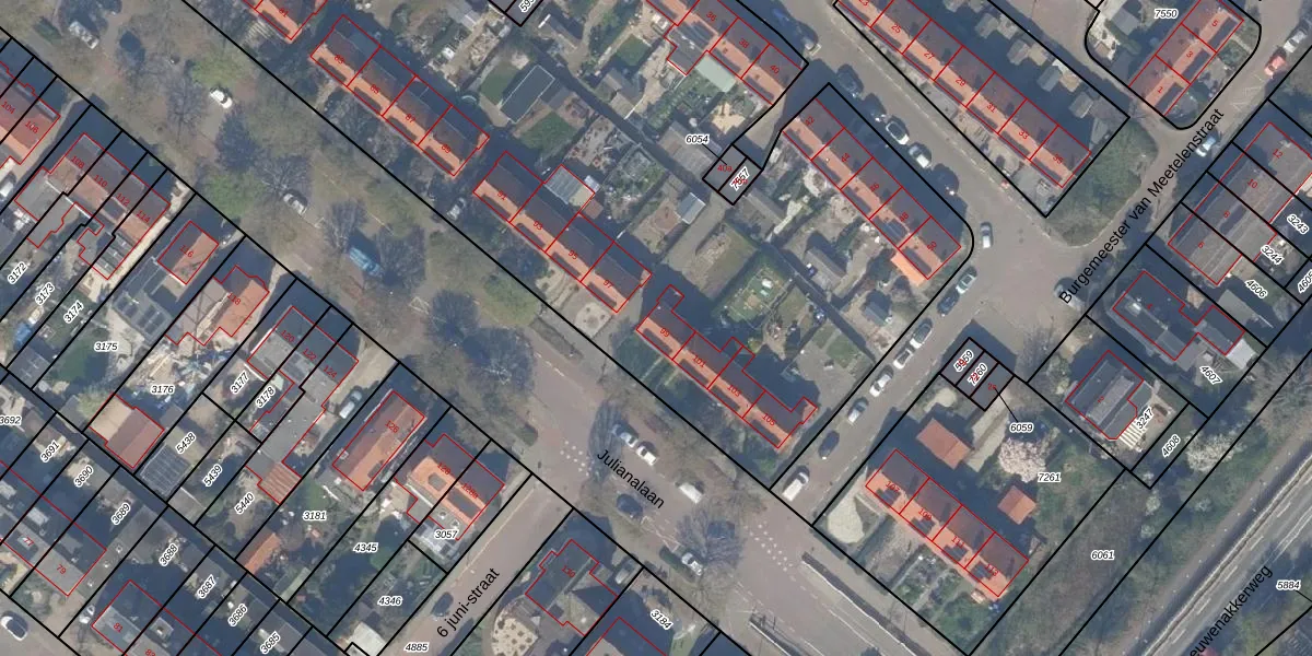 Het perceel waarop Julianalaan 99 staat heeft een oppervlakte van 7611 m². Dit is een zeer groot perceel. De perceeloppervlakte wordt geregistreerd door het Kadaster. Gedetailleerde informatie over de maten van dit perceel kunt u vinden in het rapport Kadastrale kaart met maatvoering van Julianalaan 99.