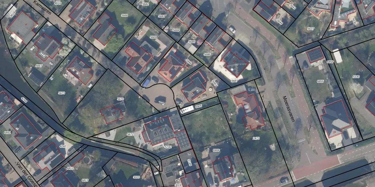 Het perceel waarop Kamvaren 13 staat heeft een oppervlakte van 401 m². Dit is een groot perceel. De perceeloppervlakte wordt geregistreerd door het Kadaster. Gedetailleerde informatie over de maten van dit perceel kunt u vinden in het rapport Kadastrale kaart met maatvoering van Kamvaren 13.