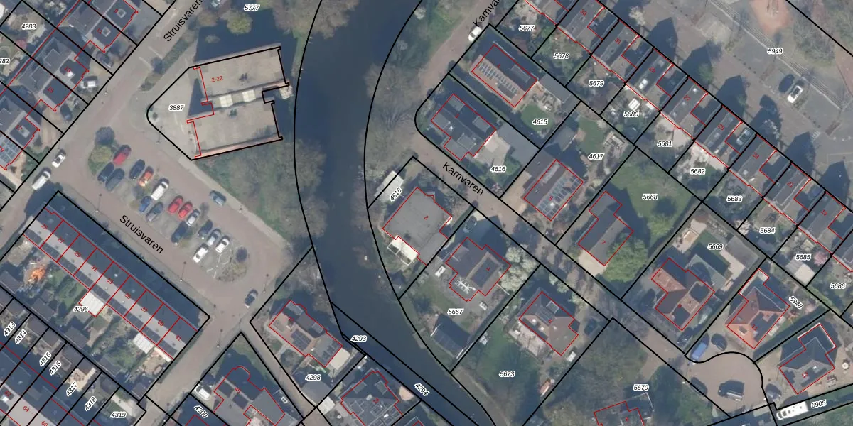 Het perceel waarop Kamvaren 2 staat heeft een oppervlakte van 435 m². Dit is een groot perceel. De perceeloppervlakte wordt geregistreerd door het Kadaster. Gedetailleerde informatie over de maten van dit perceel kunt u vinden in het rapport Kadastrale kaart met maatvoering van Kamvaren 2.