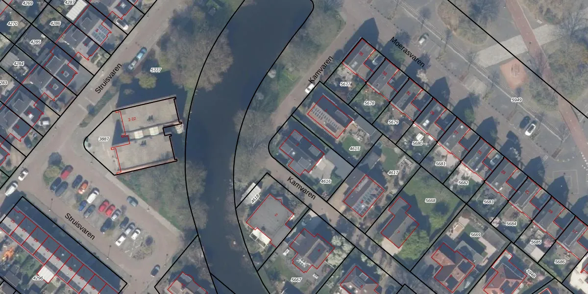Het perceel waarop Kamvaren 3 staat heeft een oppervlakte van 415 m². Dit is een groot perceel. De perceeloppervlakte wordt geregistreerd door het Kadaster. Gedetailleerde informatie over de maten van dit perceel kunt u vinden in het rapport Kadastrale kaart met maatvoering van Kamvaren 3.