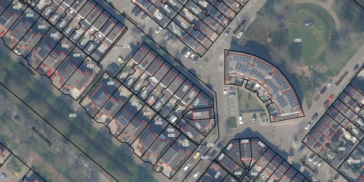 Gebruik de zoekbalk of klik op een perceel voor informatie over de adressen binnen dit perceel.