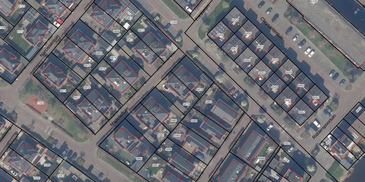 Gebruik de zoekbalk of klik op een perceel voor informatie over de adressen binnen dit perceel.