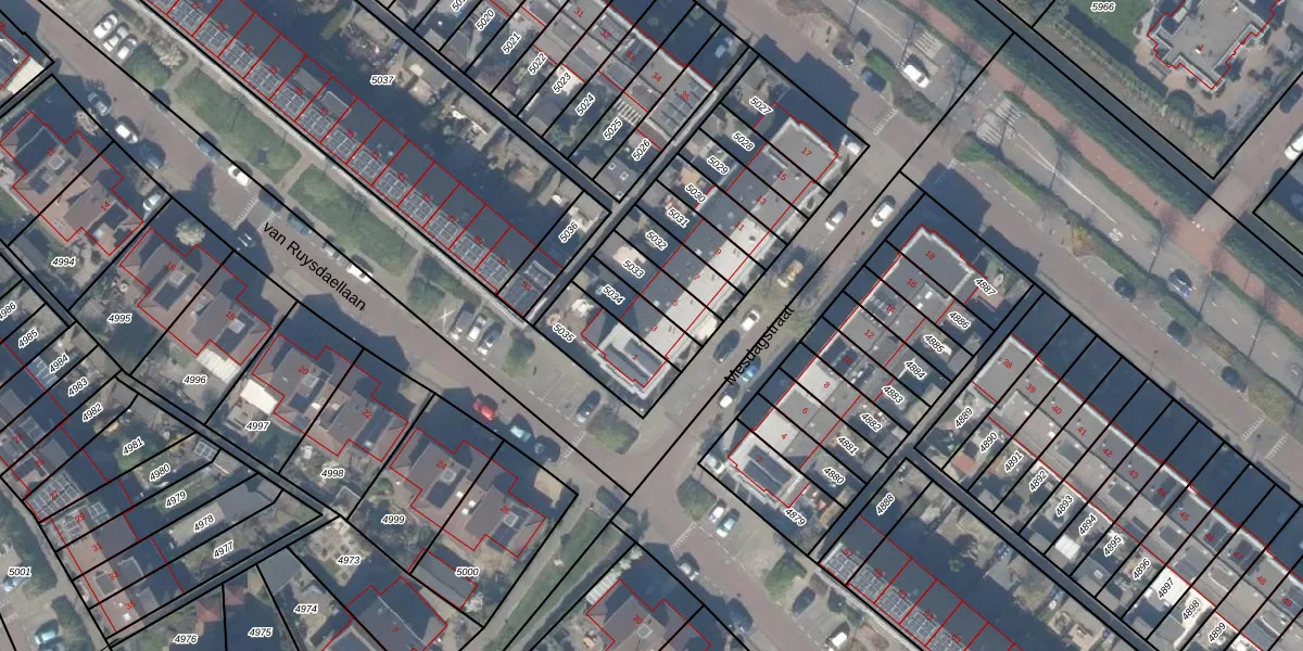 Gebruik de zoekbalk of klik op een perceel voor informatie over de adressen binnen dit perceel.
