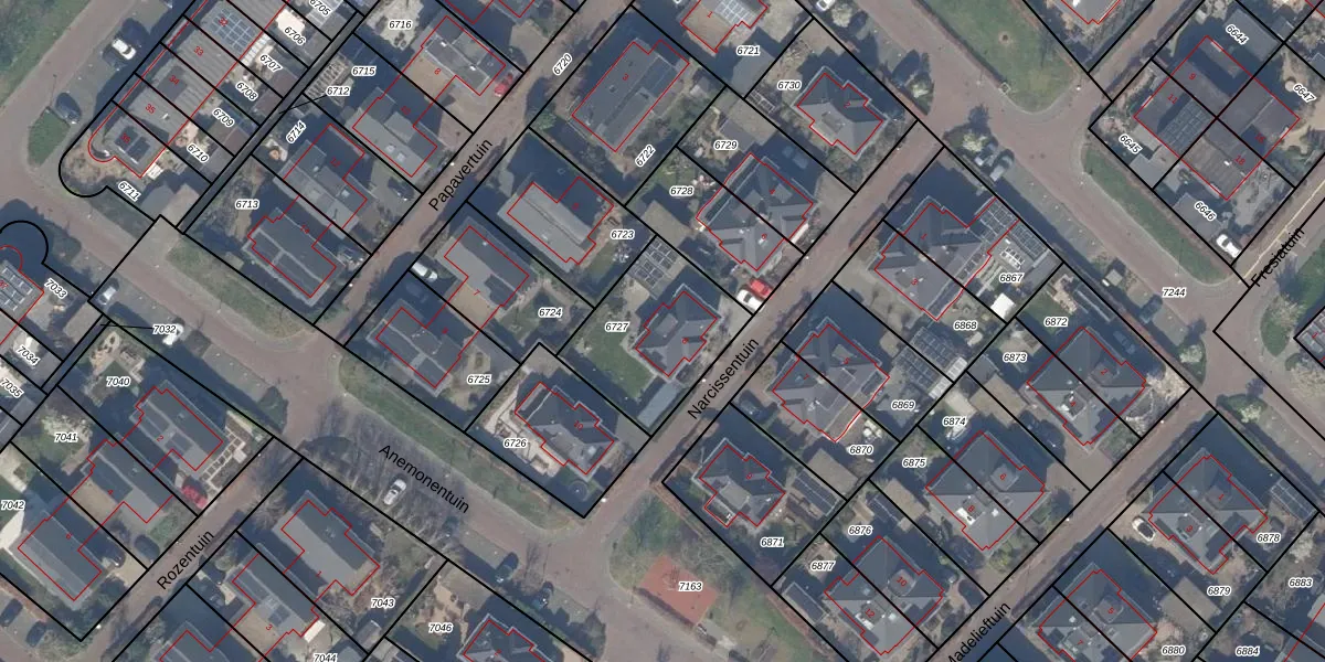 Het perceel waarop Narcissentuin 8 staat heeft een oppervlakte van 455 m². Dit is een groot perceel. De perceeloppervlakte wordt geregistreerd door het Kadaster. Gedetailleerde informatie over de maten van dit perceel kunt u vinden in het rapport Kadastrale kaart met maatvoering van Narcissentuin 8.