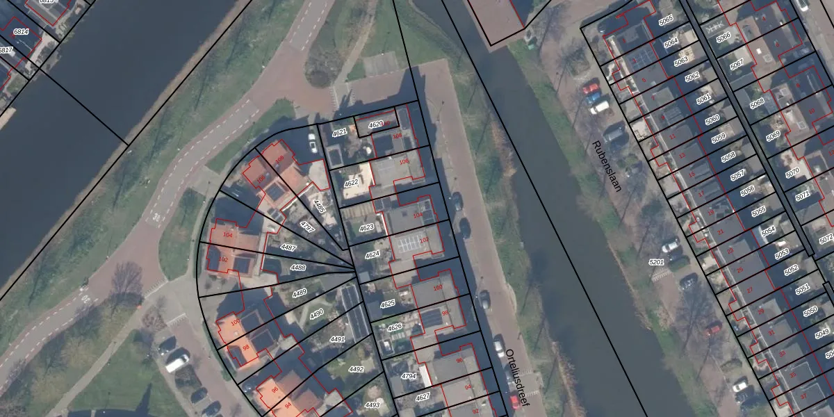 Orteliusdreef 104 is gelegen op kadastraal perceel BSH00A4623. Deze kadastrale aanduiding is uniek en wordt gebruikt door het Kadaster om eigendomsrechten en andere zakelijke rechten vast te leggen. Het perceel maakt onderdeel uit van de kadastrale gemeente Bergschenhoek.