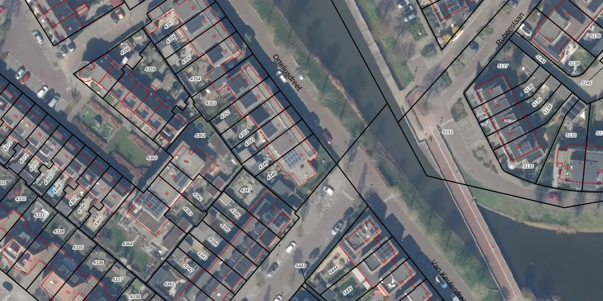 Gebruik de zoekbalk of klik op een perceel voor informatie over de adressen binnen dit perceel.